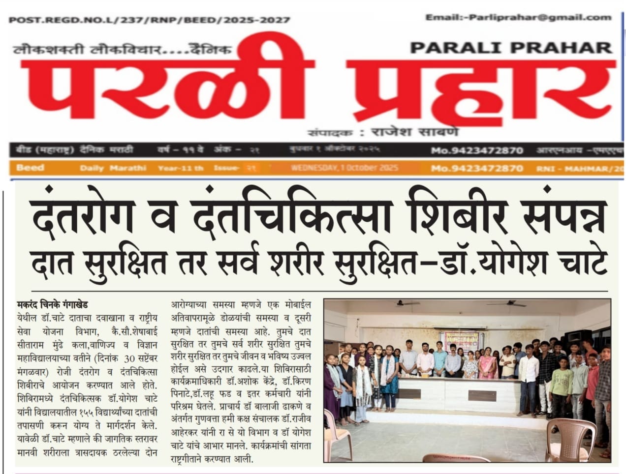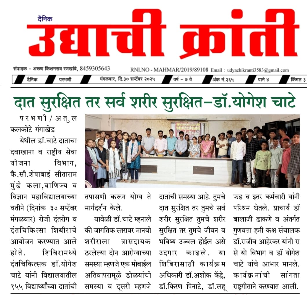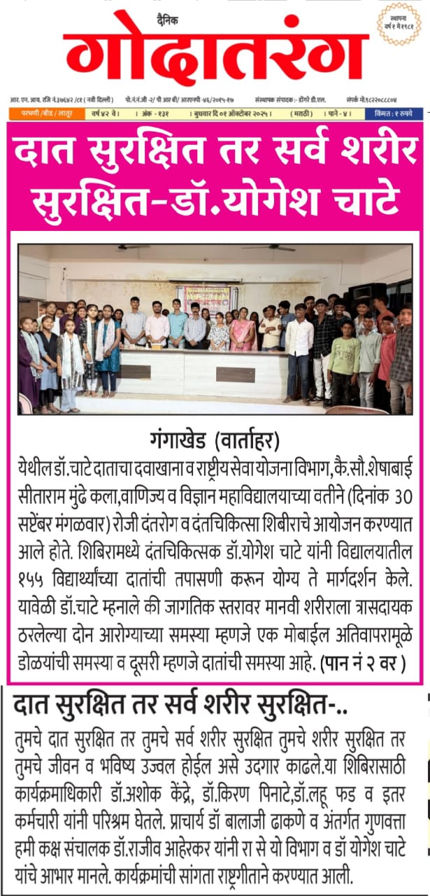 Yuvak Vikas Shikshan Prasarak Mamdal Pimpaldari has been started to provide education facilities to the students belonging to the rural, economically weak and labor families to achieve their overall development. The name of the educational institution itself indicates that yuvak vikas means development of the youth. The Governing body always monitors and advises the college administration to encourage the students to participate in various committees and sports and programs conducted by NSS. read more..